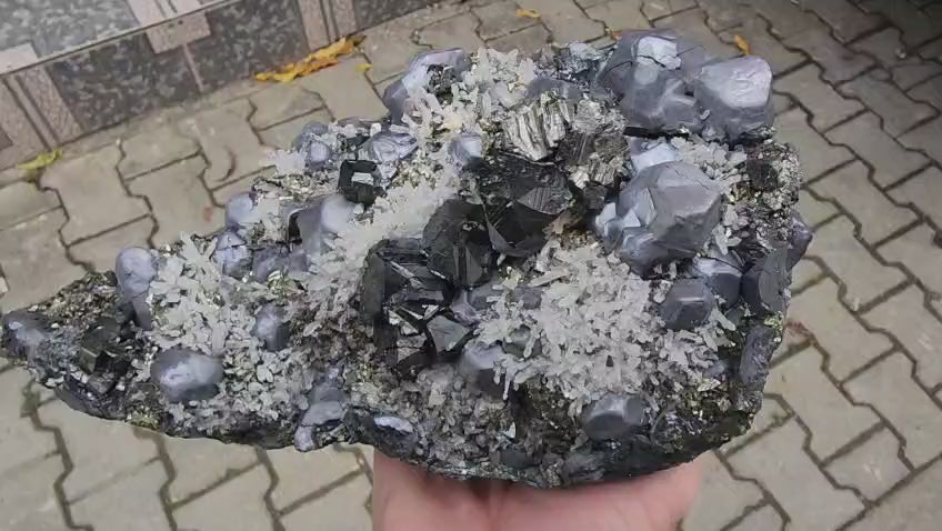 Here we have a Morphologically interesting, example of the classic mineralization from the renowned, Stantërg Trepca mine, in Kosovo, this multimineral, combination specimen, consists of Large Molten Habit Galena Crystals, Sphalerite, Pyrite, Pyrite after Pyrrhotite, Arsenopyrite Bournonite and Needle Quartz.
