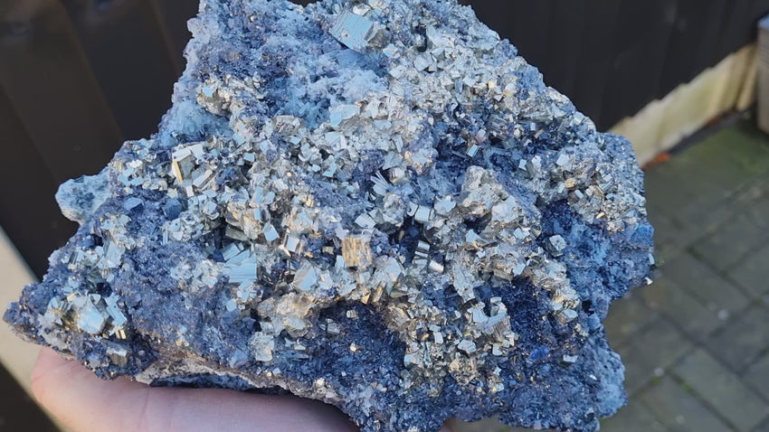 Here we have a stunning combination mineral specimen, consisting of, twined Pyrite cubes, Galena and needle Quartz on a Sphalerite matrix. A trully sparkly beauty, the photos do not do it justice.