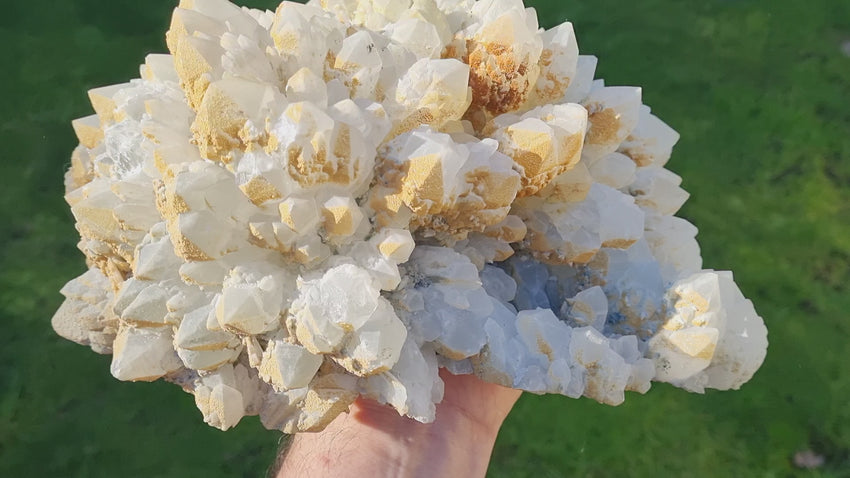 Here we have a superb example of Candle / Spirit Quartz, also refered to as "Cactus and Pineapple quartz", with a preferential growth of Brown Rhodochrosite e calcite.